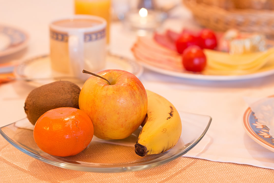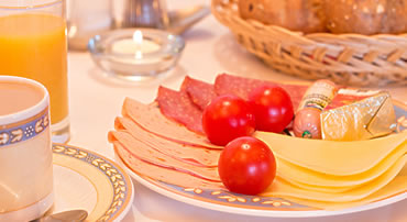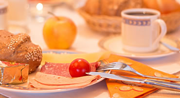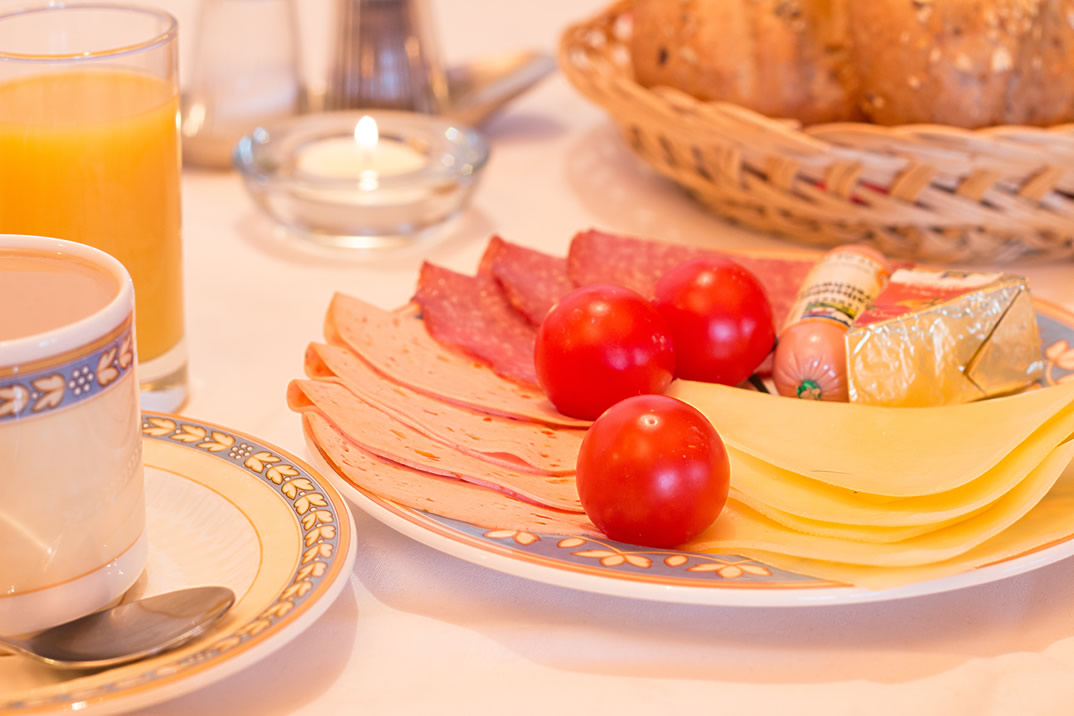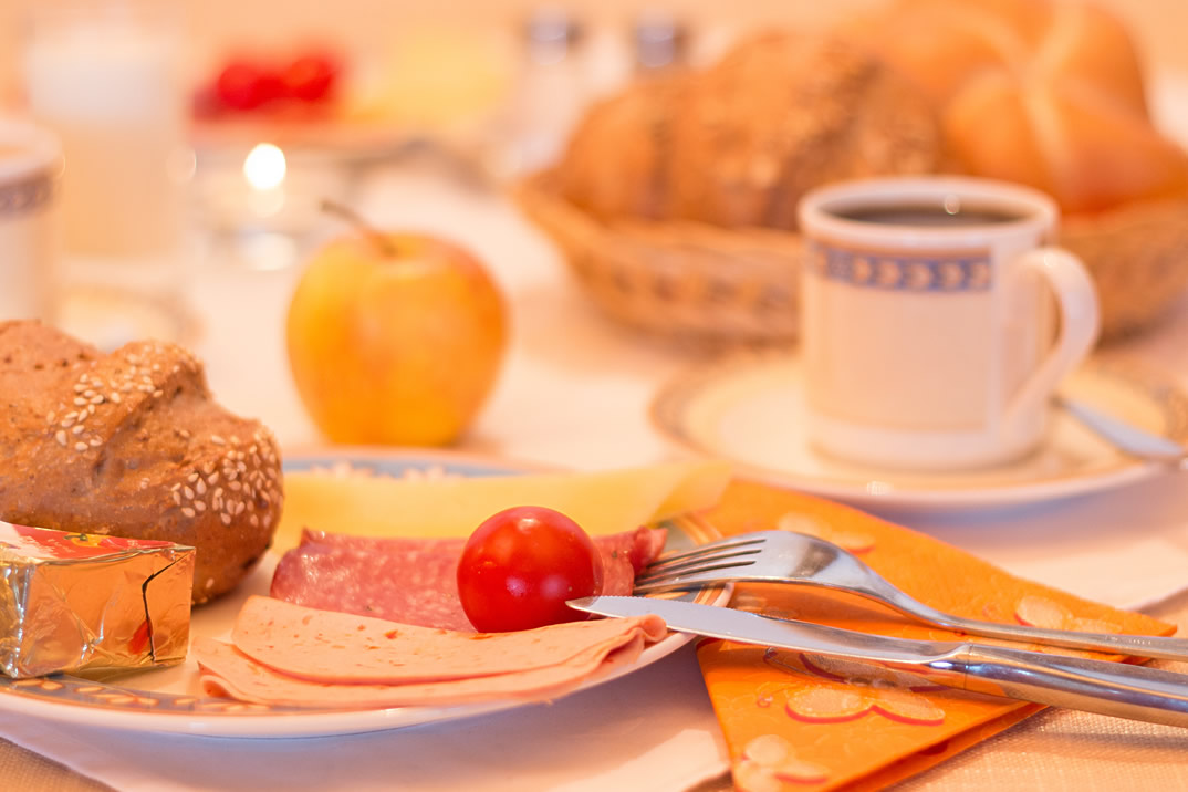 Starten Sie fit in den Tag mit unserem reichhaltigen Frühstück. Dieses wird in einer gemütlichen Gaststube serviert, in der Sie auch untertags oder abends verweilen können.